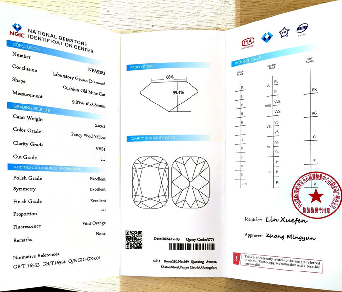 NGIC Certificate #: NPA5283(We will ship the lab-grown diamond to you along with the NGIC certificate. You can scan the barcode on the report to access the third party certificate.)