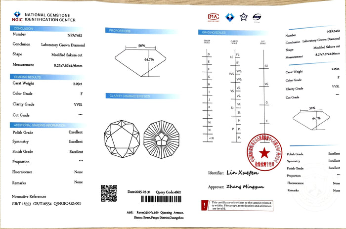 NGIC Certificate #: NPA7462(We will ship the lab-grown diamond to you along with the NGIC Certificate. You can scan the barcode on the report to access the third party certificate.)