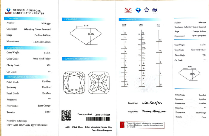NGIC Certificate #: NPA2959(We will ship the lab-grown diamond to you along with the NGIC certificate. You can scan the barcode on the report to access the third party certificate.)