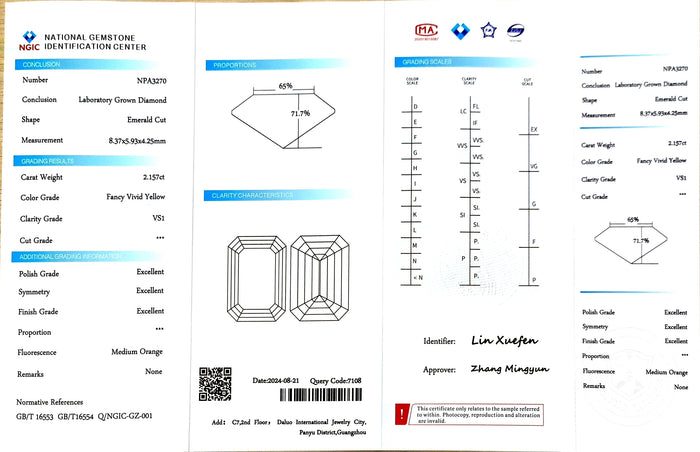 NGIC Certificate #: NPA3270(We will ship the lab-grown diamond to you along with the NGIC certificate. You can scan the barcode on the report to access the third party certificate.)