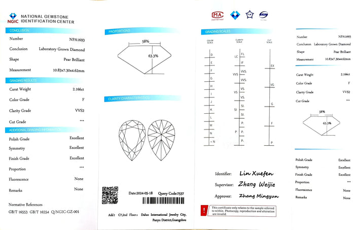 NGIC Certificate #: NPA1693(We will ship the lab-grown diamond to you along with the NGIC certificate. You can scan the barcode on the report to access the third party certificate.)