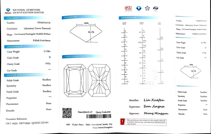NGIC Certificate #: NP427010116(We will ship the lab-grown diamond to you along with the NGIC certificate. You can scan the barcode on the report to access the third party certificate.)