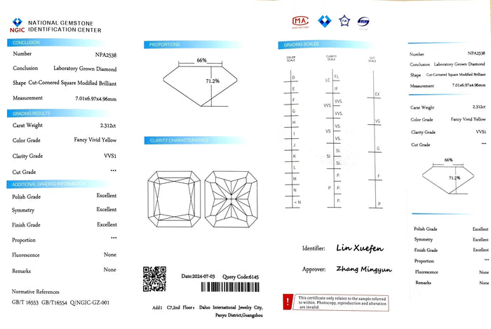 NGIC Certificate #: NPA2538(We will ship the lab-grown diamond to you along with the NGIC certificate. You can scan the barcode on the report to access the third party certificate.)