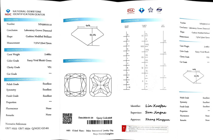 NGIC Certificate #: NP430010110(We will ship the lab-grown diamond to you along with the NGIC certificate. You can scan the barcode on the report to access the third party certificate.)