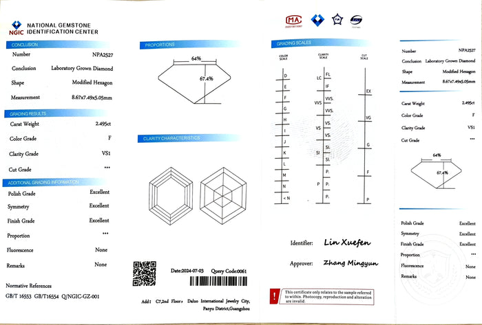 NGIC Certificate #: NPA2527(We will ship the lab-grown diamond to you along with the NGIC certificate. You can scan the barcode on the report to access the third party certificate.)