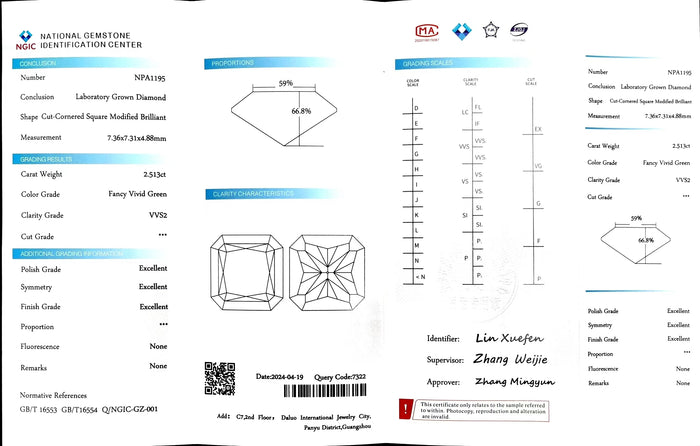 NGIC Certificate #: NPA1195(We will ship the lab-grown diamond to you along with the NGIC certificate. You can scan the barcode on the report to access the third party certificate.)