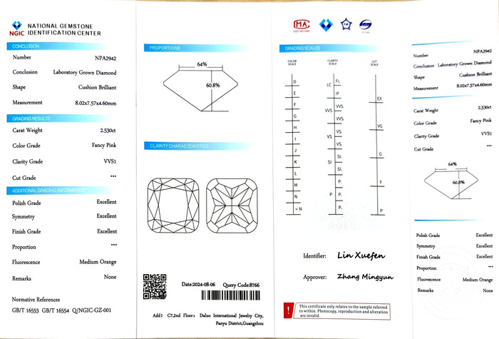 NGIC Certificate #: NPA2942(We will ship the lab-grown diamond to you along with the NGIC certificate. You can scan the barcode on the report to access the third party certificate.)