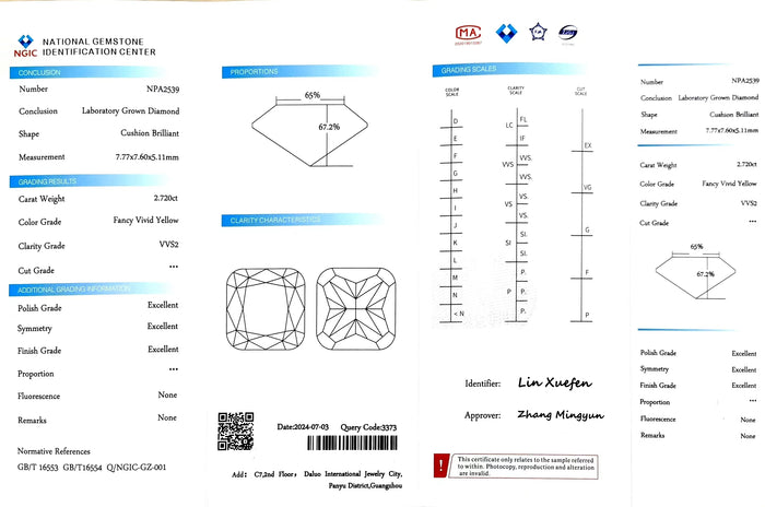 NGIC Certificate #: NPA2539(We will ship the lab-grown diamond to you along with the NGIC certificate. You can scan the barcode on the report to access the third party certificate.)