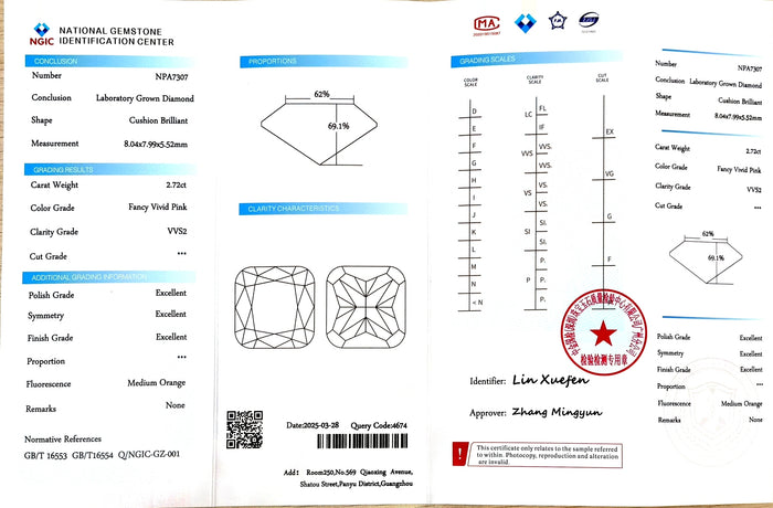 NGIC Certificate #: NPA7307(We will ship the lab-grown diamond to you along with the NGIC Certificate. You can scan the barcode on the report to access the third party certificate.)