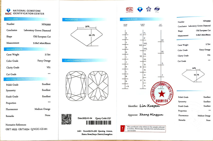 NGIC Certificate #: NPA5950(We will ship the lab-grown diamond to you along with the NGIC certificate. You can scan the barcode on the report to access the third party certificate.)