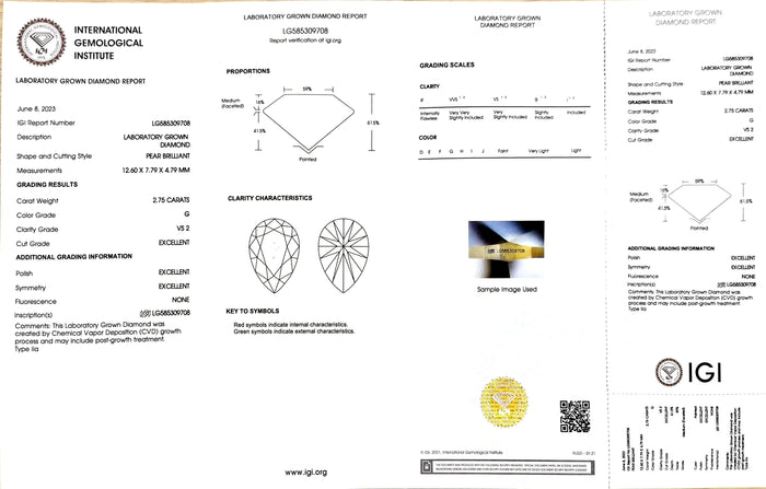 IGI Certificate #: LG585309708(We will ship the lab-grown diamond to you along with the IGI certificate. You can scan the barcode on the report to access the third party certificate.)
