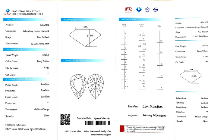 NGIC Certificate #: NPA3272(We will ship the lab-grown diamond to you along with the NGIC certificate. You can scan the barcode on the report to access the third party certificate.)