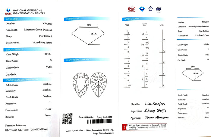 NGIC Certificate #: NPA2099(We will ship the lab-grown diamond to you along with the NGIC certificate. You can scan the barcode on the report to access the third party certificate.)