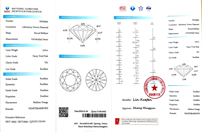 NGIC Certificate #: NPA5953(We will ship the lab-grown diamond to you along with the NGIC certificate. You can scan the barcode on the report to access the third party certificate.)