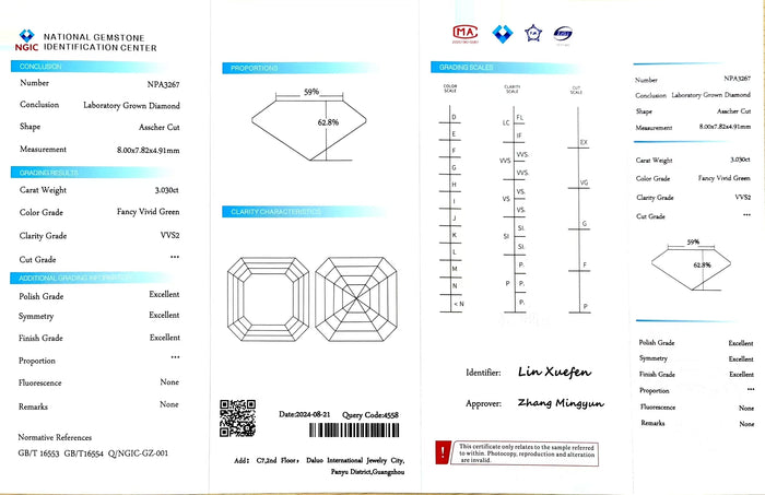 NGIC Certificate #: NPA3267(We will ship the lab-grown diamond to you along with the NGIC certificate. You can scan the barcode on the report to access the third party certificate.)