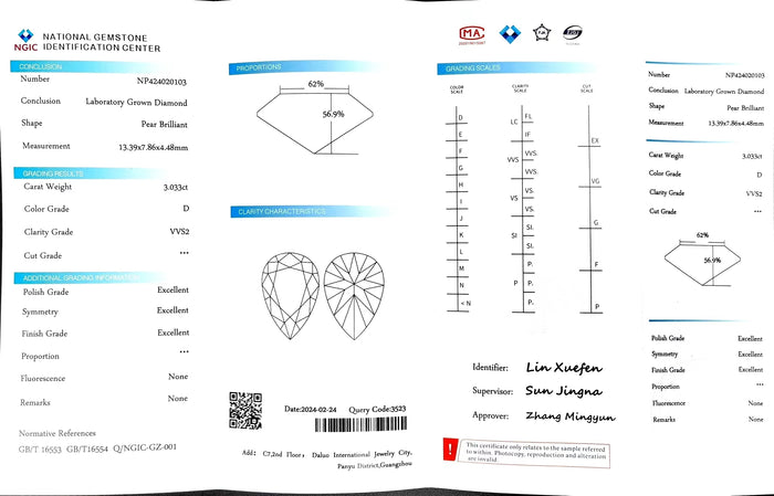 NGIC Certificate #: NP424020103(We will ship the lab-grown diamond to you along with the NGIC certificate. You can scan the barcode on the report to access the third party certificate.)