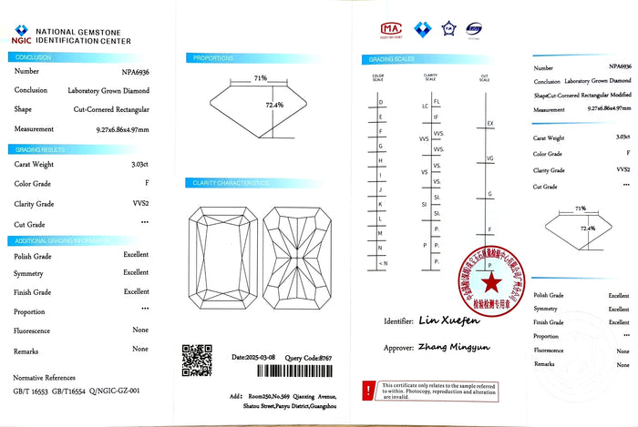 NGIC Certificate #: NPA6936(We will ship the lab-grown diamond to you along with the NGIC certificate. You can scan the barcode on the report to access the third party certificate.)