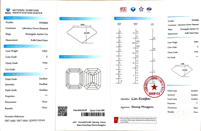 NGIC Certificate #: NPA6930(We will ship the lab-grown diamond to you along with the NGIC certificate. You can scan the barcode on the report to access the third party certificate.)
