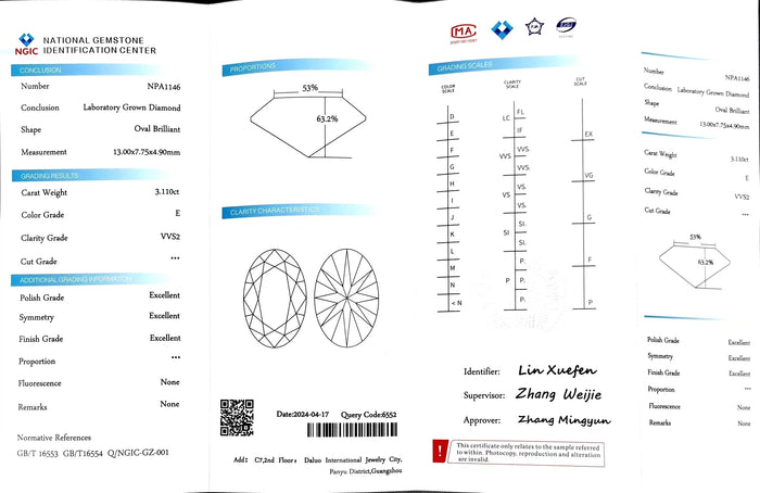 NGIC Certificate #: NPA1146(We will ship the lab-grown diamond to you along with the NGIC certificate. You can scan the barcode on the report to access the third party certificate.)