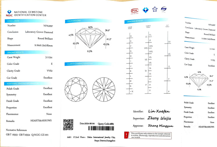 NGIC Certificate #: NPA2097(We will ship the lab-grown diamond to you along with the NGIC certificate. You can scan the barcode on the report to access the third party certificate.)