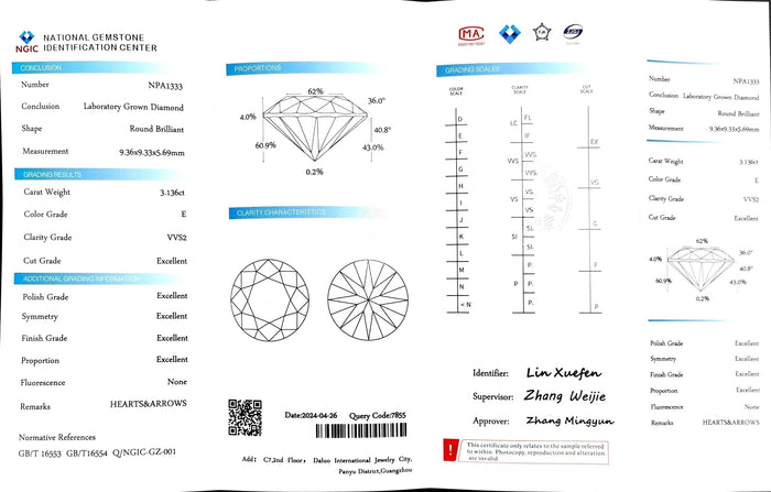NGIC Certificate #: NPA1333(We will ship the lab-grown diamond to you along with the NGIC certificate. You can scan the barcode on the report to access the third party certificate.)
