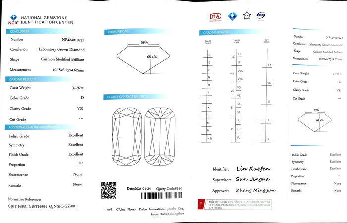 NGIC Certificate #: NP424010224(We will ship the lab-grown diamond to you along with the NGIC certificate. You can scan the barcode on the report to access the third party certificate.)
