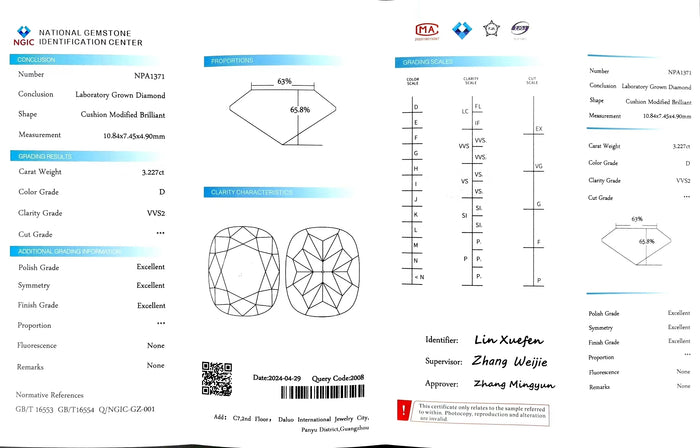 NGIC Certificate #: NPA1371(We will ship the lab-grown diamond to you along with the NGIC certificate. You can scan the barcode on the report to access the third party certificate.)