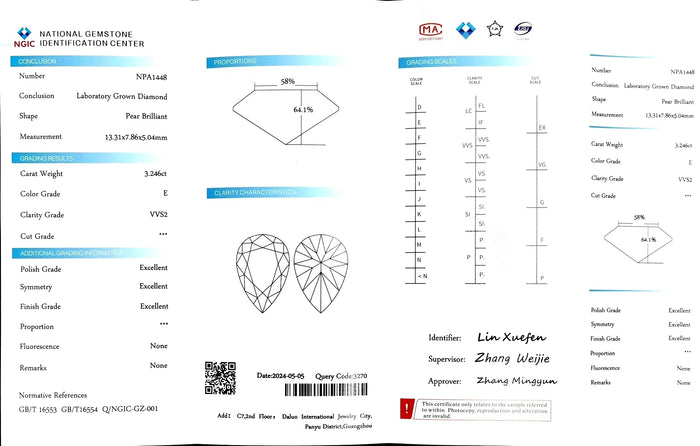 NGIC Certificate #: NPA1448(We will ship the lab-grown diamond to you along with the NGIC certificate. You can scan the barcode on the report to access the third party certificate.)