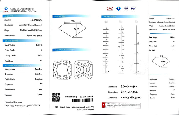 NGIC Certificate #: NP415010165(We will ship the lab-grown diamond to you along with the NGIC certificate. You can scan the barcode on the report to access the third party certificate.)