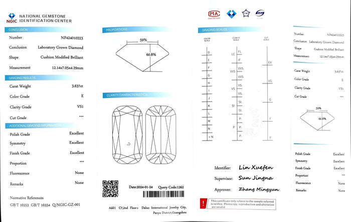 NGIC Certificate #: NP424010223(We will ship the lab-grown diamond to you along with the NGIC certificate. You can scan the barcode on the report to access the third party certificate.)