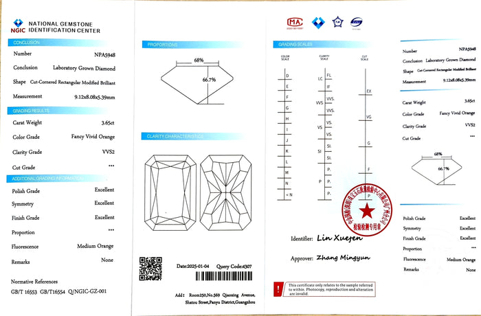 NGIC Certificate #: NPA5948(We will ship the lab-grown diamond to you along with the NGIC certificate. You can scan the barcode on the report to access the third party certificate.)
