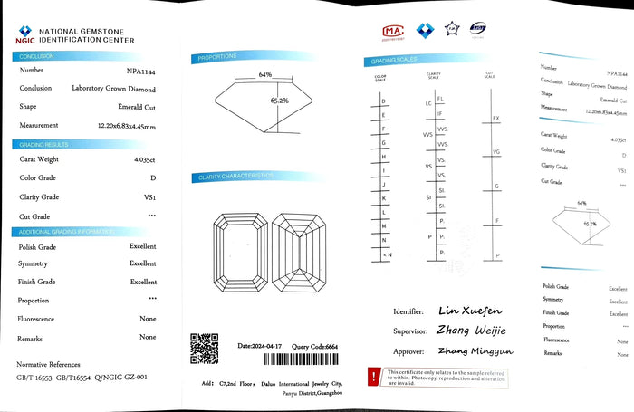 NGIC Certificate #: NPA1144(We will ship the lab-grown diamond to you along with the NGIC certificate. You can scan the barcode on the report to access the third party certificate.)