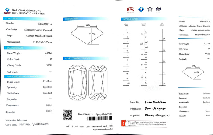 NGIC Certificate #: NP412010114(We will ship the lab-grown diamond to you along with the NGIC certificate. You can scan the barcode on the report to access the third party certificate.)