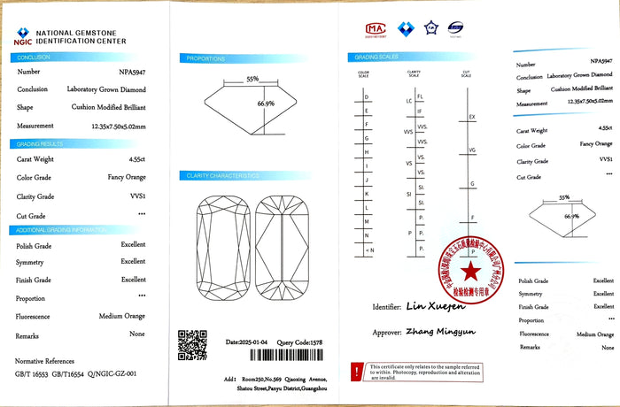 NGIC Certificate #: NPA5947(We will ship the lab-grown diamond to you along with the NGIC certificate. You can scan the barcode on the report to access the third party certificate.)