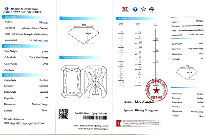 NGIC Certificate #: NPA5949(We will ship the lab-grown diamond to you along with the NGIC certificate. You can scan the barcode on the report to access the third party certificate.)