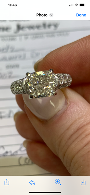 $726 for this ring with a 2 carat princess pink peach accident center, with moissanite accents in 10K white gold. Size 5.25