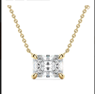 $561 for this pendant with a 3ct(7*9mm) GHI color radiant moissanite in 10K white gold. 14" 10K white gold chain