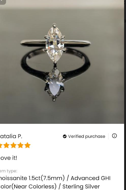 $193 for this ring with a 1ct(5*10mm) GHI color marquise moissanite in rose gold plated silver. Size 4.5