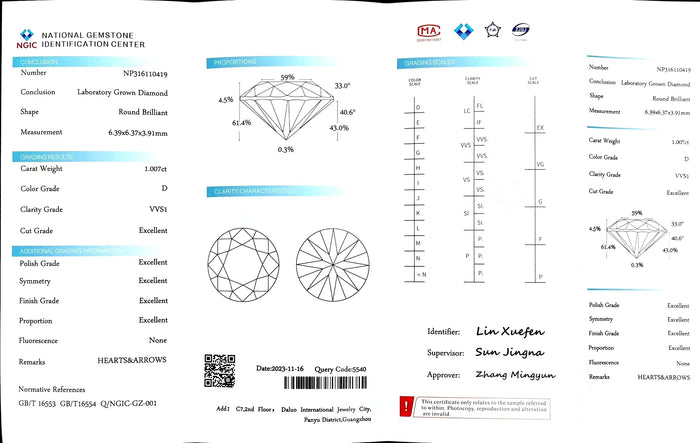 NGIC Certificate #: NP316110419(We will ship the lab-grown diamond to you along with the NGIC certificate. You can scan the barcode on the report to access the third party certificate.)