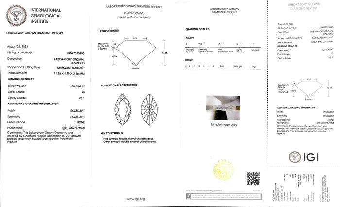 IGI Certificate #: LG597375995(We will ship the lab-grown diamond to you along with the IGI certificate. You can scan the barcode on the report to access the third party certificate.)