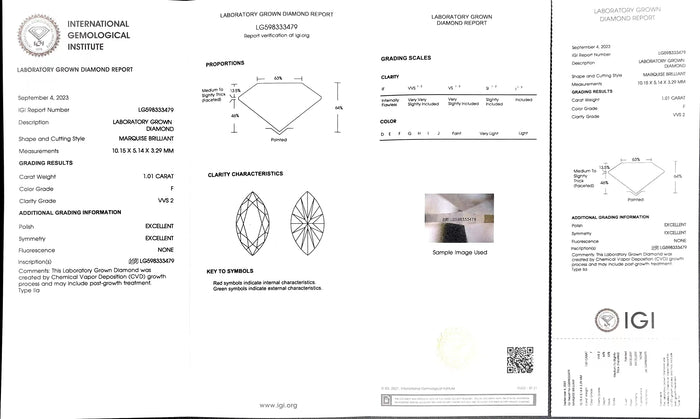 IGI Certificate #: LG598333479(We will ship the lab-grown diamond to you along with the IGI certificate. You can scan the barcode on the report to access the third party certificate.)