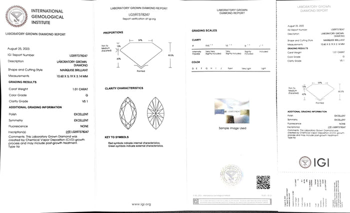 IGI Certificate #: LG597378247(We will ship the lab-grown diamond to you along with the IGI certificate. You can scan the barcode on the report to access the third party certificate.)