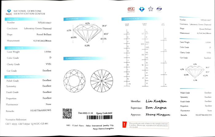 NGIC Certificate #: NP316110417(We will ship the lab-grown diamond to you along with the NGIC certificate. You can scan the barcode on the report to access the third party certificate.)