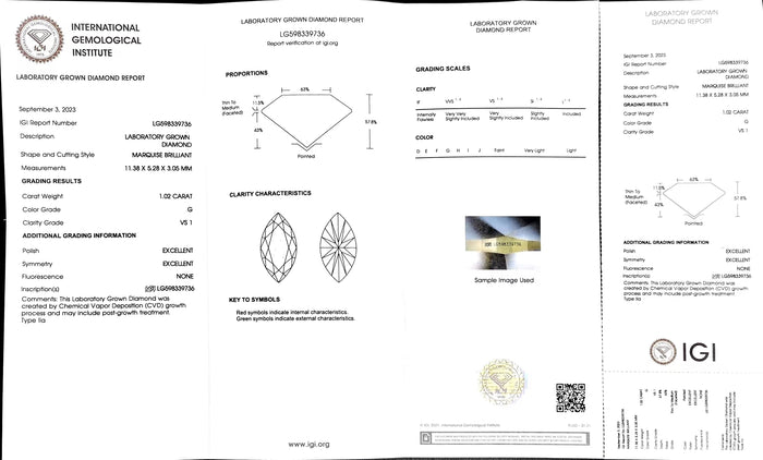 IGI Certificate #: LG598339736(We will ship the lab-grown diamond to you along with the IGI certificate. You can scan the barcode on the report to access the third party certificate.)