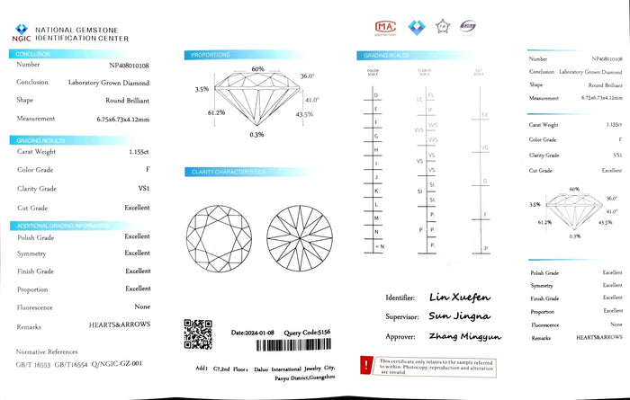 NGIC Certificate #: NP408010108(We will ship the lab-grown diamond to you along with the NGIC certificate. You can scan the barcode on the report to access the third party certificate.)