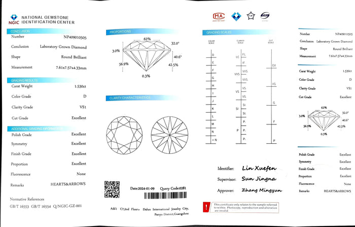 NGIC Certificate #: NP409010505(We will ship the lab-grown diamond to you along with the NGIC certificate. You can scan the barcode on the report to access the third party certificate.)