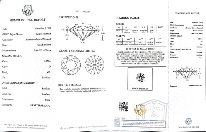 GEMID Certificate #: GZ23110300014(We will ship the lab-grown diamond to you along with the GEMID certificate. You can scan the barcode on the report to access the third party certificate.)