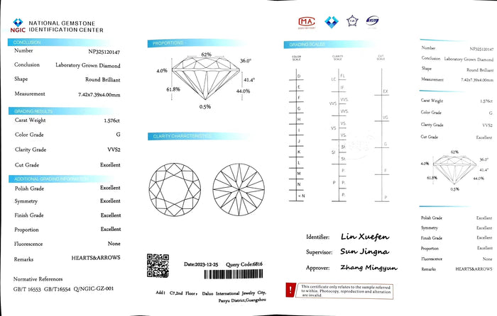 NGIC Certificate #: NP325120147(We will ship the lab-grown diamond to you along with the NGIC certificate. You can scan the barcode on the report to access the third party certificate.)
