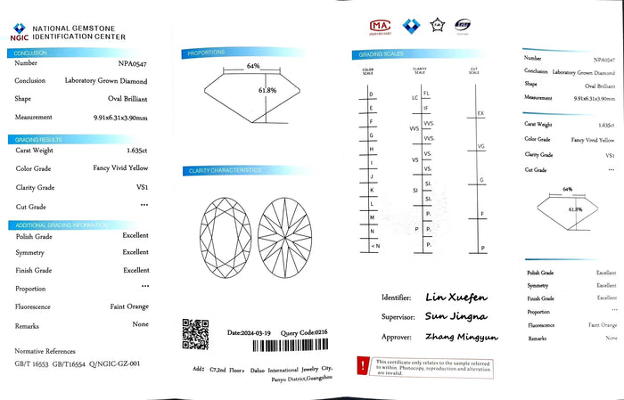 NGIC Certificate #: NPAO547(We will ship the lab-grown diamond to you along with the NGIC certificate. You can scan the barcode on the report to access the third party certificate.)