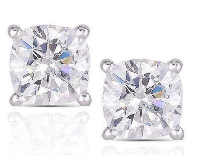 Center stone in picture is 1.1ct(6*6mm)/per G-H-I color cushion moissanite.ONLY earring post is 10k white gold. The rest part of earring is sterling silver